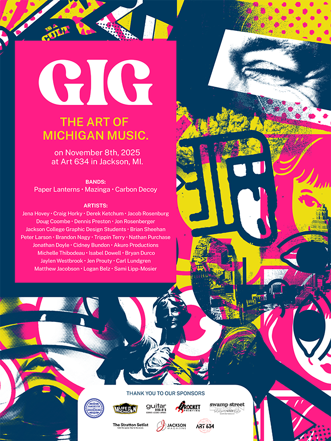 GIG—The Art of Michigan Music Foundation celebrates and amplifies Michigan’s rich music culture by highlighting the visual artists who shape its creative identity. Through exhibitions, workshops, and live events, we provide a platform for photographers, graphic designers, and videographers who craft concert posters, album art, band t-shirts, logos, and music videos—essential visual elements that elevate and support Michigan’s vibrant music community.