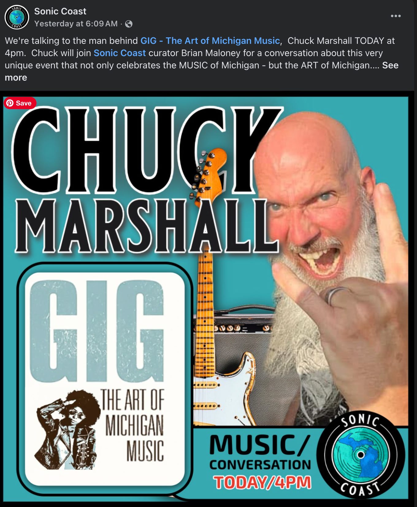 Many thanks to Brian Maloney of Sonic Coast for taking the time to chat with Chuck about GIG - The Art of Michigan Music. Not sure if it will be available for replay, but nonetheless, download the app and listen to Sonic Coast. They are HUGE supporters of Michigan music and all of the associated arts.