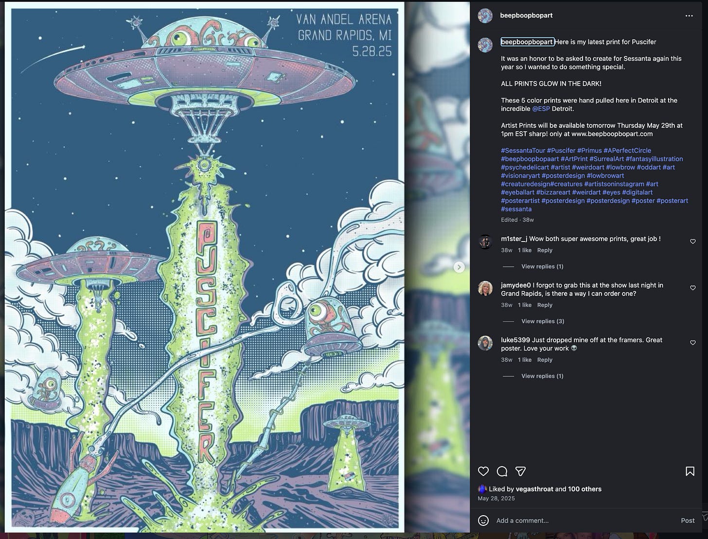 Love the otherworldly, whimsical artwork on the posters by Andrew and Rachael Johnson of Beepboopbop Art.