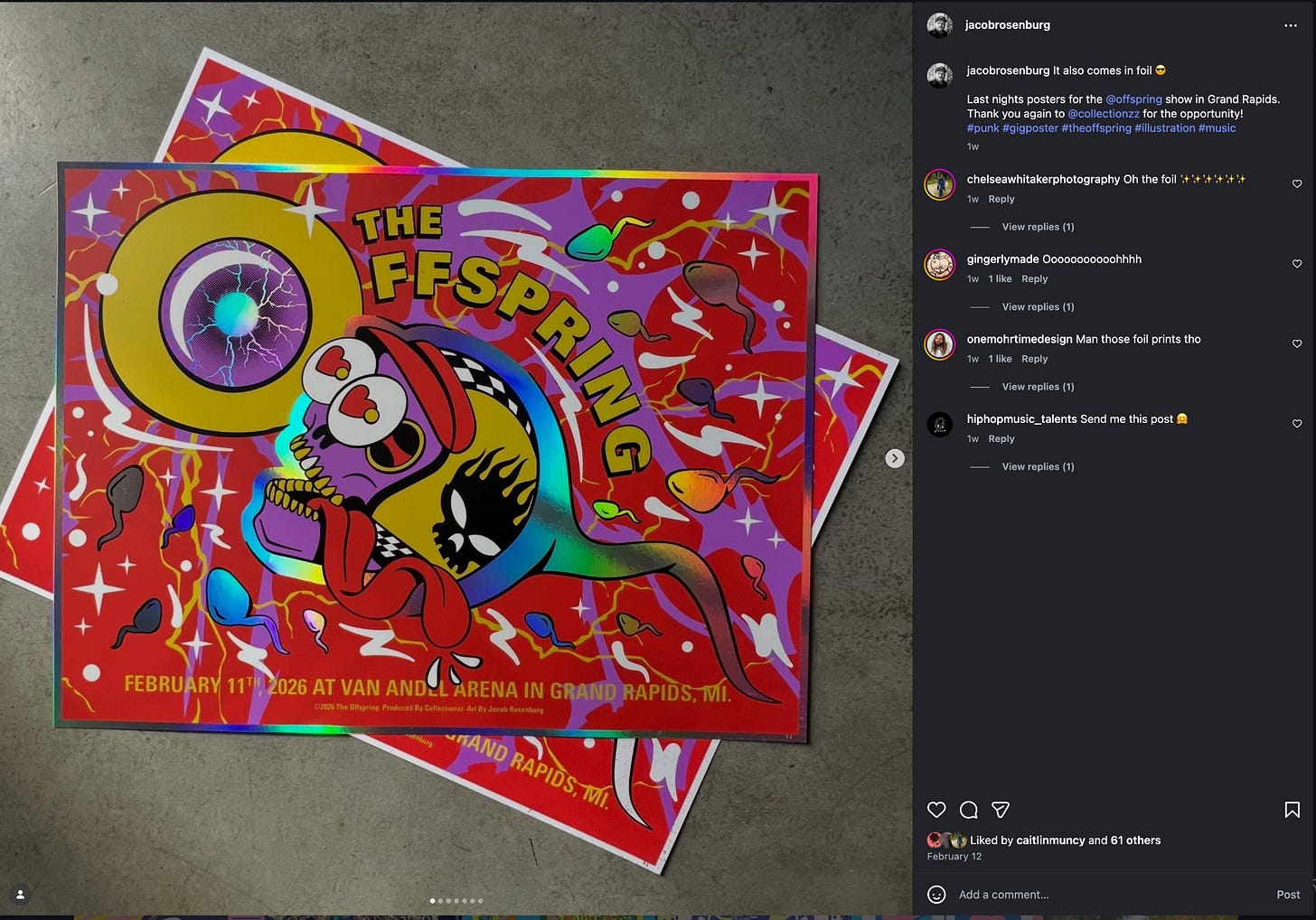 Nobody uses color to such great effect as the masterful Jacob Rosenburg. Check out these killer posters for The Offspring.