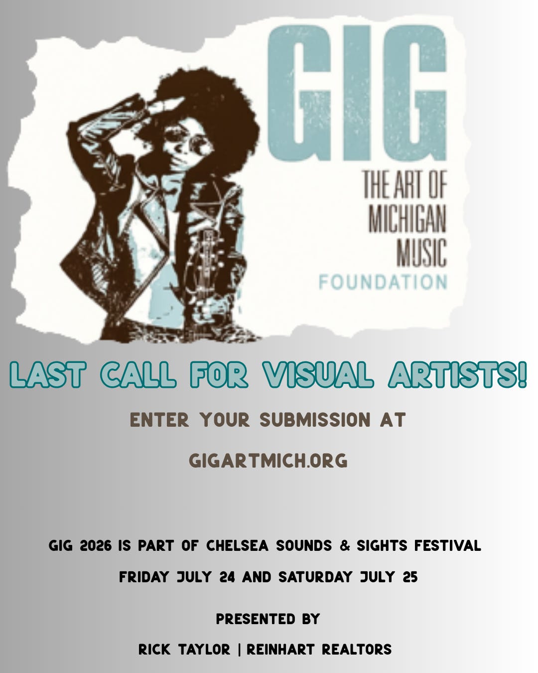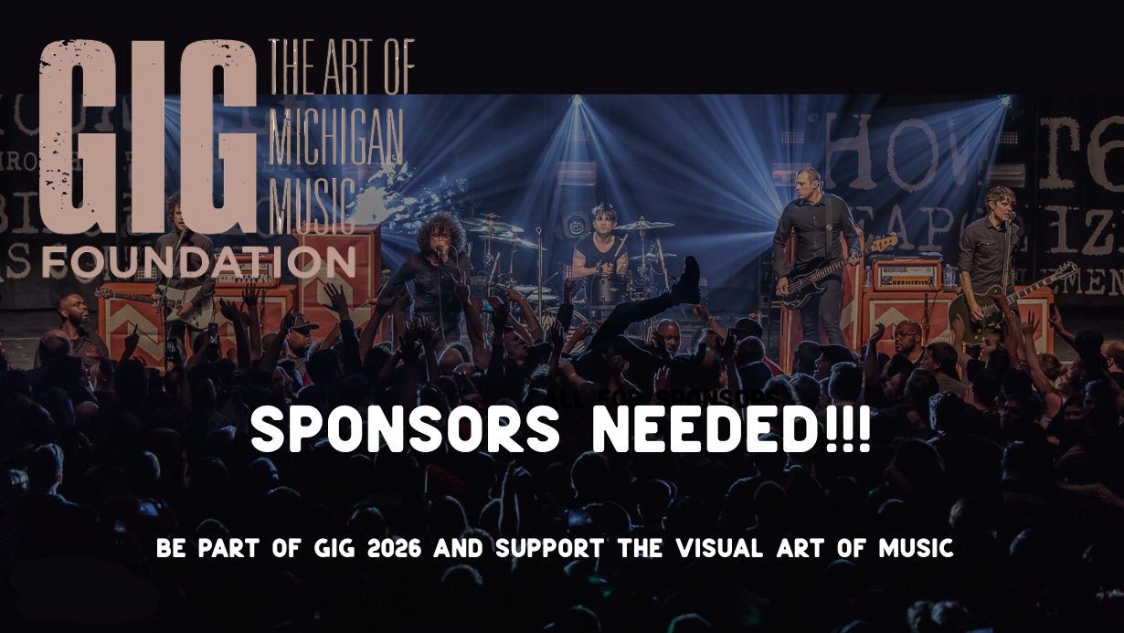 GIG - The Art of Michigan Music Foundation celebrates and amplifies Michigan’s rich music culture by highlighting the visual artists who shape its creative identity. Through exhibitions, workshops, and live events, we provide a platform for photographers, graphic designers, and videographers who craft concert posters, album art, band t-shirts, logos, and music videos—essential visual elements that elevate and support Michigan’s vibrant music community.